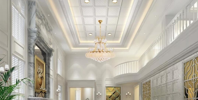 挑高客廳的空間大,如果頂部裝飾少,會(huì)顯得很空洞。可以在頂部裝上集成吊頂,來彰顯你的品味。注意在選擇集成吊頂?shù)臅r(shí)候要和家中的整體風(fēng)格進(jìn)行匹配。