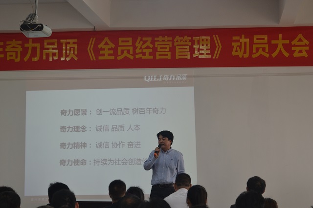 4月2日,繼3月奇力多次大幅對外展示大動作和決心之后,終于迎來奇力內部大變革的伊始。“2015年奇力吊頂‘全員經營管理’動員大會”于8時10分正式拉開帷幕。