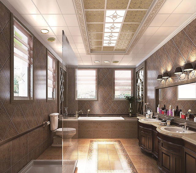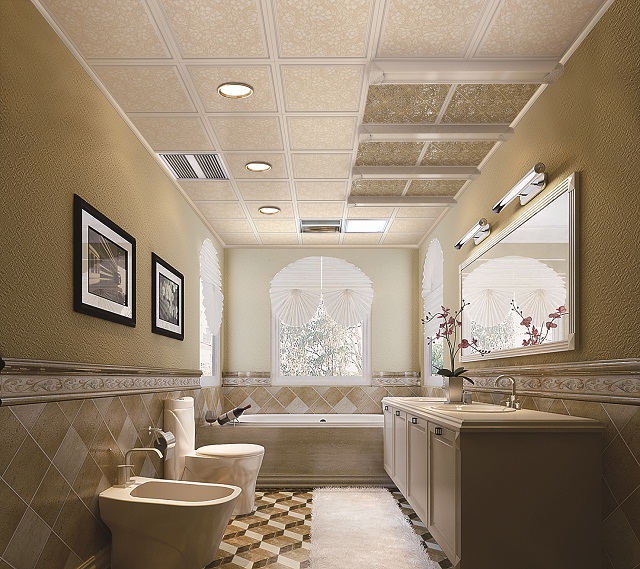 衛浴間的水汽較重,所以,要選擇那些具有防水、防腐、防銹特點的材料做頂棚是很重要的。