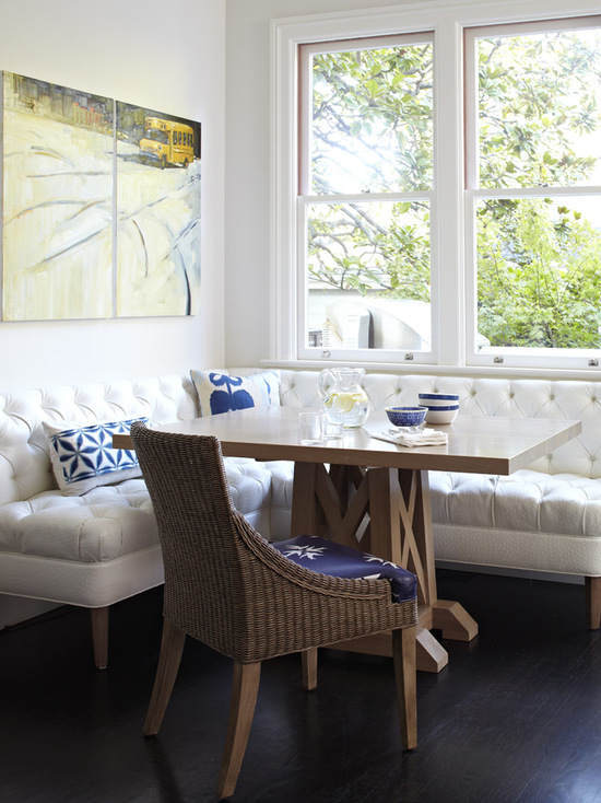 小編推薦:柔軟的座位擁有客廳沙發般的舒適享受,木質的餐桌散發著田園的自然味道,窗外綠枝婆娑,如果還覺得單調一副小掛畫即可以給空間不同感覺。