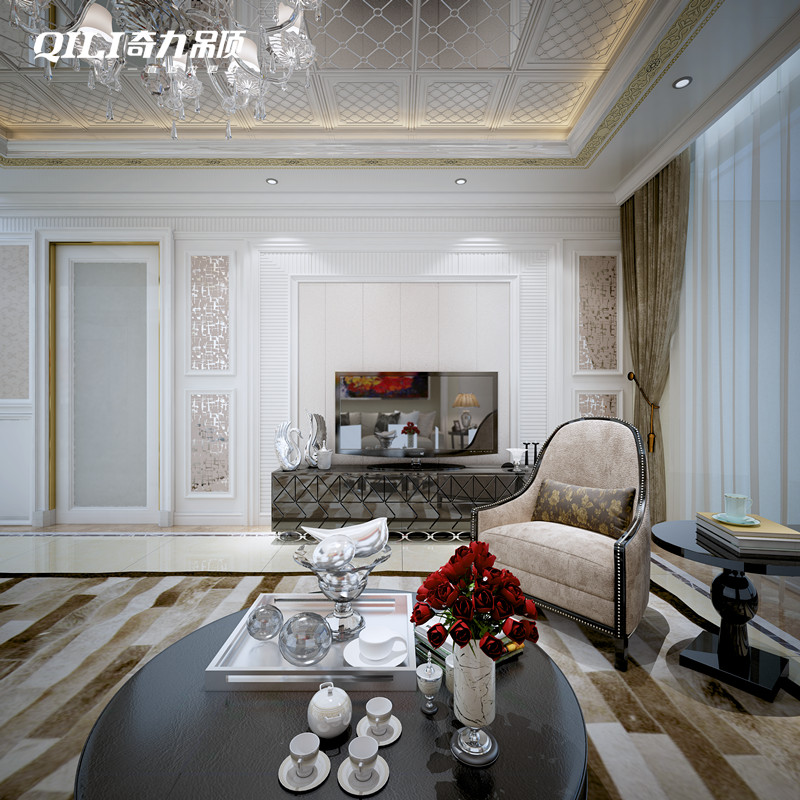 在美式、法式或者古典風(fēng)格里,踢腳線和門套、天花等等形成視覺(jué)上的統(tǒng)一效果,起到裝飾性作用。