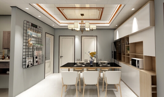 餐廳是凝聚一家人幸福的地方。 吊頂有一種“魔力”,可以為舌尖上的美味增添更多的美好與浪漫。大尺寸扣板與家居的搭配,碰撞出現代優雅的用餐氛圍,空間顯得開闊又吸人眼球,容易讓人“深陷...